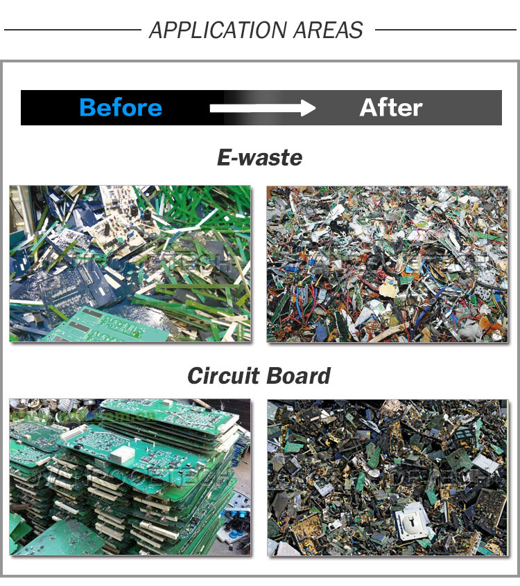 E-waste shredder is an advanced recycling machine designed to process various types of discarded electronic products, including circuit boards, computers, televisions, and cables. It plays a crucial role in modern recycling systems by reducing bulky electronic waste into manageable sizes. This initial size reduction is essential for improving the efficiency of downstream separation and recovery processes.