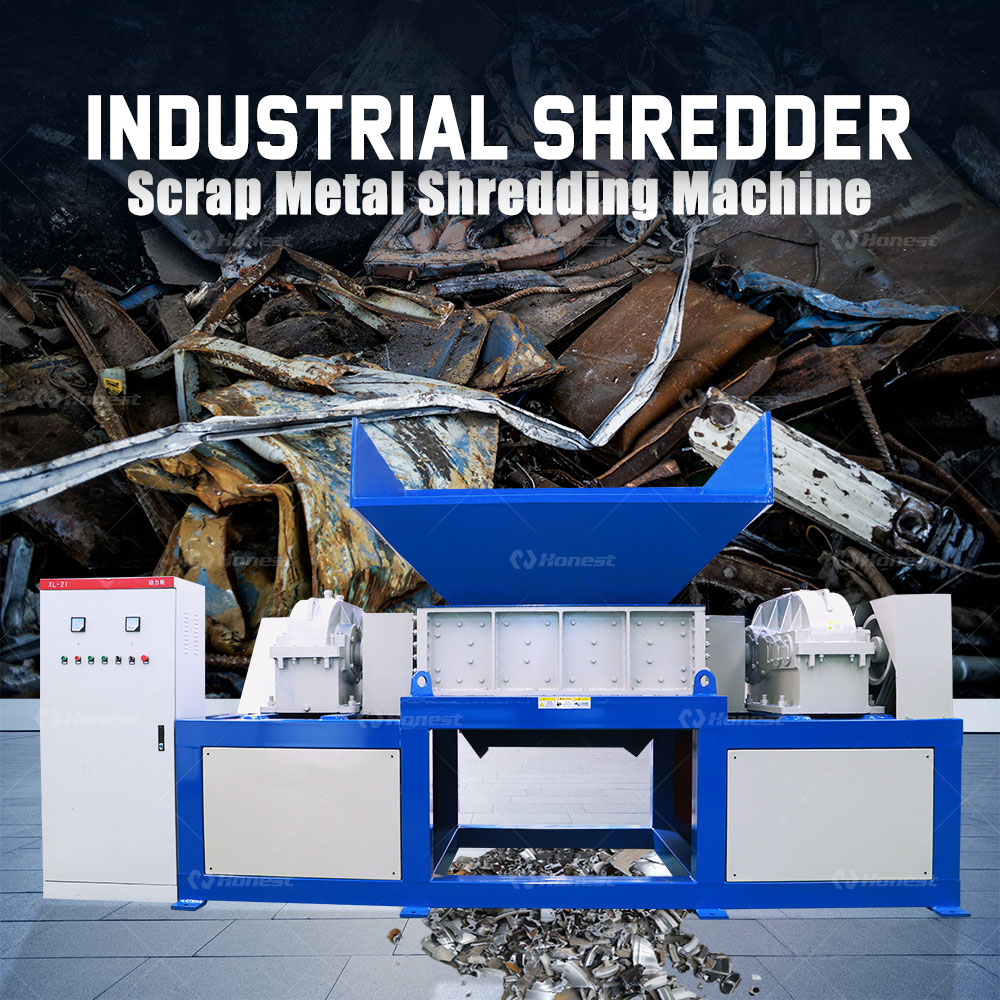 Scrap Metal Shredder from Honest is a heavy-duty machine designed to process various types of metal waste, including steel scraps, aluminum profiles, car shells, and metal drums. It is widely used in recycling plants and metal processing industries to reduce large metal materials into smaller, uniform pieces for easier handling and further refining.